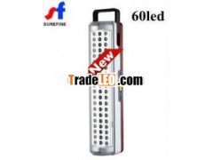 Product: 309 LED rechargeable portable emergency lamp, wall mounted, DC mode, test function button, green indicator for battery, red indicator for charge.Overcharge protection .ABS material